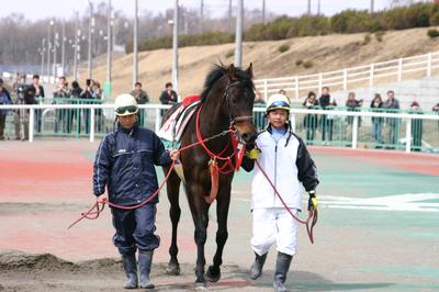 馬場が凍結状態のために追い切りの時間が延長され、壮行会後に