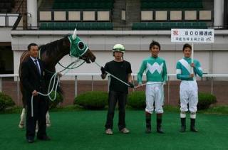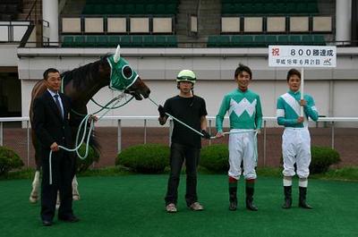 斎藤正弘騎手 800勝達成! 2006.06.21 平成18年6月21日 第2レースで、斎藤正博騎手がアイスバレエ号に騎乗し800勝を達成しました。 (なお、口取り写真では、同厩舎の川島雅人騎手がプラカードを持ちをつとめてくれました。)