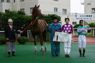 平成18年6月27日第6レースで、櫻井拓章騎手がワンダーアイアン号に騎乗し400勝を達成しました。