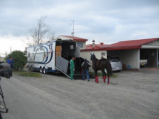 10月29日(日)東京競馬場で実施される天皇賞(秋)に向けて、本日(10月26日)10:30コスモバルクが門別競馬場を出発しました。