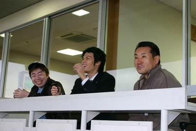 馬主室への招待イベント 2006.11.07 11月7日、札幌競馬場で、一般ファンを対象とした『馬主室への招待イベント』が行われ、3名が第5レース・第6レースを馬主席から観戦しました。 参加者は、札幌市の石川千尋さん、岡本雅臣さん、真狩村の植田輝彦さん。 3名は3階の馬主室へ入場し、馬主気分をあじわいながら馬券を握りしめレースを観戦し、とても感激していました。