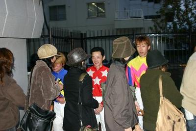 ホッカイドウ競馬ジョッキー握手会! 2006.11.09 11月9日、札幌競馬場で最終レース終了後にジョッキー握手会が行われ、かけつけたファン約200名がジョッキーと握手を交わしました。 握手会は、北海道調騎会騎手部会と北海道厩務員会の主催で、今シーズンの声援に対しての感謝の気持ちを込めて開催しました。 初めに騎手の佐々木国明騎手会長から、ファンに対してお礼の挨拶がされ、引き続き、騎手のサインやブルゾン、ポロシャツなどが当たる抽選会が行われ、その後、参加騎手全員と握手を交わしました。