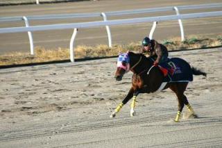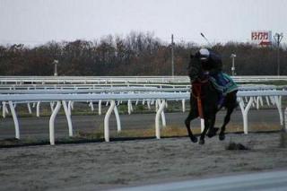 本日11月19日門別競馬場(晴 良)で11月25日(土)JCダート(2100m D左)出走予定のジンクライシス(堂山厩舎)、11月26日(日)JC(2400m 芝左)に出走予定のコスモバルク(田部厩舎)の最終追い切りが行われました。