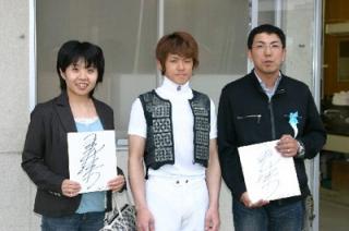 2名は実況放送室で古川アナウンサーと競馬ブックの高倉記者が担当したパドック解説と太田アナウンサーが担当したレース実況を観戦し、その後、検量室では亀井洋司騎手から、サインをもらいました。