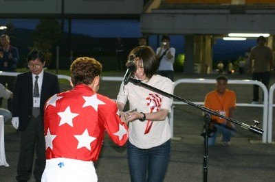 中:五十嵐騎手へトロフィーを贈呈
