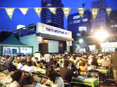 大通りビアガーデンサッポロビール会場でPRイベントを実施 2007.07.27 7月26日(木)大通ビアガーデン「サッポロビールイベント会場」にてホッカイドウ競馬PRイベントが実施されました。 会場にはホクトくんも登場しホッカイドウ競馬のPRやクイズ大会でが行われ、また会場の大型スクリーンにはホッカイドウ競馬では初の取り組みとなる旭川ナイトレースのライブ映像が放映され、会場の中には事前に馬券を購入してきた方やスポーツ新聞片手に携帯で購入する姿もあり盛り上がりました。