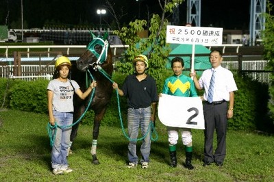 8月9日、山口竜一騎手(桧森邦夫厩舎)が、旭川競馬第12レース アドルフイモンに騎乗し、昭和56年のデビュー以来、16,928戦目で通算2,500勝を達成しました。