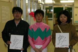 下:服部騎手との記念撮影(川本騎手が後ろでVサイン!?)