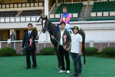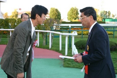 第44回目は「グラスワンダー賞」で、新冠町のファンがプレゼンターを務め、優勝馬ディアダンサーの谷口調教師(馬主代理)と服部騎手にそれぞれ記念品を贈呈しました。