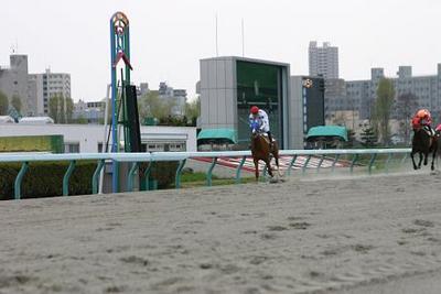 本日4月29日開幕したホッカイドウ競馬。札幌競馬の第5レース1000m、全国で最初の新馬戦(2006年度産馬(2歳馬))「JRA認定競走フレッシュチャレンジ競走」が行われ、ジェリ産駒イケノナイン(牝)が初勝利をあげました。