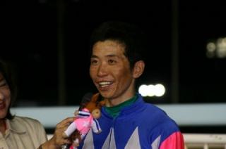 中:優勝インタビューを受ける小国博行騎手