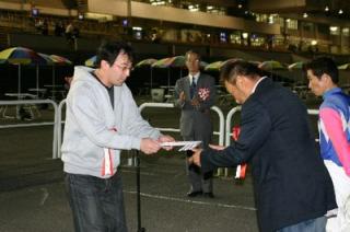 優勝馬の馬主 藤本直弘氏と小国博行騎手にそれぞれ記念品を贈呈しました。
