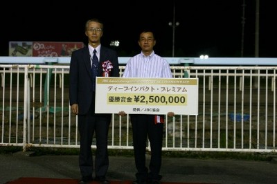 このレースでは、櫻井拓章騎手騎乗のアーペレーヌ号が勝利し、米川昇調教師(馬主代理)へ1着賞金250万円を贈呈しました。