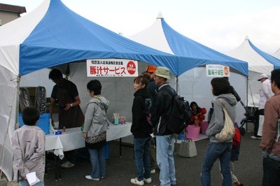競馬場内では、(社)北海道馬主会提供で先着500名様に豚汁の無料配付や、『とれたて収穫市』として、日高町の農産物や水産加工品、他にもクレープやお好み焼き、ベーグルにクッキーなどの試食販売が行われました!子供たちには「駄菓子すくい」が行われ、旭川競馬場がお祭りムードに包まれました!