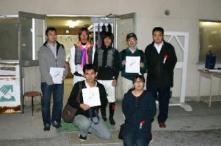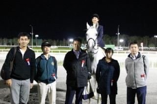 第19回 実況放送室・検量室観戦ツアー 2008.09.24 9月24日、旭川競馬場において、「第19回 実況放送室・検量室観戦ツアー」が行われ、東京都と神奈川県、苫小牧市、滝川市、旭川市から5名のファンが見学しました。 5名は実況放送室で古川アナウンサーと競馬ブックの高倉記者が担当した第7レースのパドック解説を観戦、その後、検量室では誘導馬や伊藤千尋騎手、亀井洋司騎手と記念撮影をしました。 写真 上:伊藤千尋騎手、亀井洋司騎手と記念撮影 下:誘導馬と記念撮影