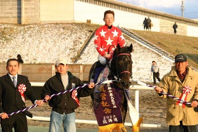 11月20日、門別競馬場で本年度のホッカイドウ競馬のフィナーレを飾る『第51回 道営記念』(サラ 一般オープン 2,000m)が行われ、五十嵐騎手騎乗のコンテ(角川厩舎)が2分10秒8で勝利!