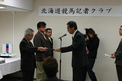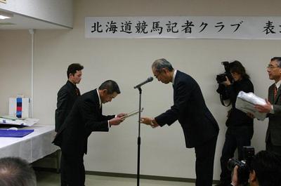 12月12日、平成20年度のホッカイドウ競馬を盛り上げた馬や関係者の功績を称える『北海道競馬記者クラブ表彰式』が、北海道競馬事務所会議室行われました。