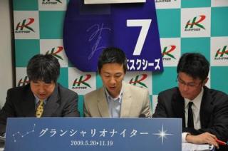 (社)JBC協会協賛 スタリオンシリーズ2009「スパイキュール賞」 2009.06.10 メインレースは、スタリオンシリーズ「スパイキュール賞」。(株)サラブレッドクラブラフィアン代表岡田紘和氏がパドック解説のゲストとして登場。スパイキュール号の近況について解説していただきました。また、レース終了後には、表彰式のプレゼンターも務め、優勝馬ソシアルセンプー号の馬主寺島 義典氏にスパイキュール号の2010年度種付権利が贈呈されました。 写真上:写真中央 パドックゲスト解説の岡田紘和氏