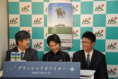 ホッカイドウ競馬の全レース終了後、その日のレース解説や次週の注目レースの展望などを紹介する「来週の展望」(火・水は、明日の展望) に本日の第13回北海道スプリントカップ(JpnⅢ)、ポートジェネラル号に騎乗した高知のリーディングジョッキー赤岡修次騎手がスペシャルゲストとして登場しました。リニューアルとなった門別競馬場「グランシャリオナイター」の感想や来月7月24日から始まる高知の「夜さ恋ナイター」への抱負について笑顔をまじえ話していただきました。