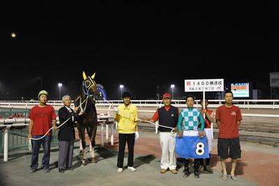 7月7日(火)、宮崎光行騎手(松本隆宏厩舎)が、門別競馬第9レースでパレスチャイナ号に騎乗し、昭和59年のデビュー以来、10,008戦目で中央・地方通算1,400勝を達成しました。(ホッカイドウ競馬では現役4人目、歴代6人目。)