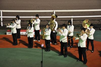 北海道富川高等学校吹奏楽部による生ファンファーレではじまったブリーダーズゴールドカップは15頭立てで行われ、スマートファルコン号は道中2番手をキープし、外から追い上げるアドマイヤスバル号を振り切り優勝しました。