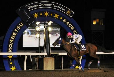 今年ホッカイドウ競馬でデビューした2歳馬による最高峰のレースのひとつ、netkeiba.com杯第3回ブリーダーズゴールド・ジュニアカップ(H1)[ネオユニヴァース賞]が行われ、桑村真明騎手騎乗の3番人気ビッグバン号が、直線で鋭く抜け出すと後続を4馬身引き離して優勝しました(タイム 1分53秒4)。