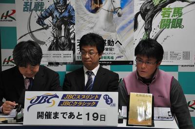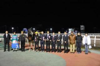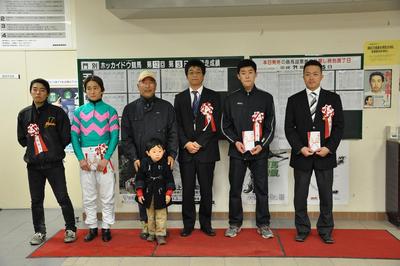 パドック解説のゲストに酒井優一氏出演 2009.10.15 第10競走と第11競走のパドック解説ゲストとして、HBA日高軽種馬農業協同組合総務部長 酒井優一氏が出演。今回の協賛レースについての経緯や先週の9日(金)~13日(日)に実施した2009馬産地見学ガイドツアーについて話していただきました。 また、レース終了後には、表彰式のプレゼンターも務めていただきました。