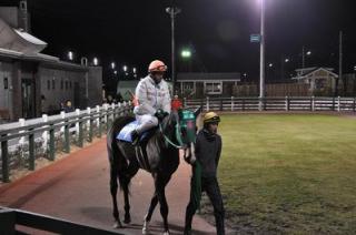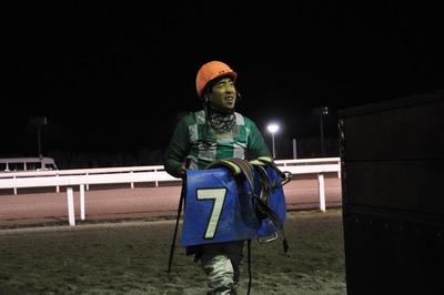 宮崎光行騎手と山口竜一騎手 レースに復帰 2009.11.03 7月21日、門別競馬第7レースで落馬し、負傷休養していた宮崎光行騎手(松本隆宏厩舎)が約3ヶ月ぶりにレースに復帰しました。「3ヶ月のブランクはさすがにきつかったですね。今年の開催もあと少しですが、ファンのみなさんの期待にそえるようしっかり立て直して頑張っていきたいですね」と笑顔で応えてくれました。 また、病気療養中でありました山口竜一騎手(桧森邦夫厩舎)が第5レースに復帰しました。これからの二人の活躍にご期待下さい。