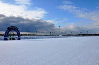 写真上:門別競馬場冬景色