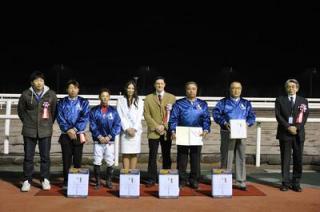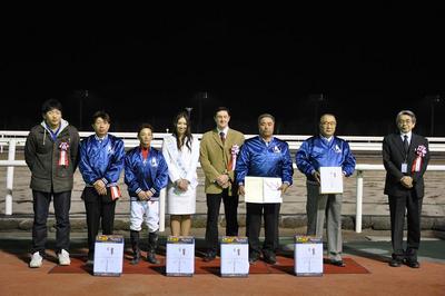 また、このレースの表彰式では、ダーレー・ジャパン株式会社スタリオンオペレーションディレクター、シェーン・ホーラン氏から馬主 西森 三智代様へザール号の種付権利の目録が手渡されました。