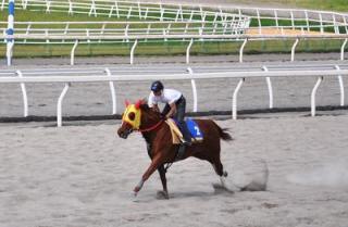 6月17日(木)に第14回北海道スプリントカップ(JpnⅢ)[クロフネ賞](1200m ダート・右)に出走する笠松のラブミーチャン号(牝3 柳江仁 厩舎)の最終追い切りが本日門別競馬場(外走路 良)で行われました。