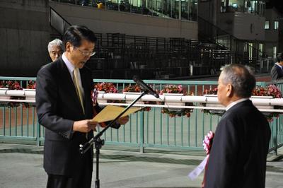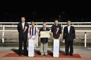 浦河町長杯うらかわ優駿ビレッジアエル特別記念イベントの実施 2010.09.23 本日の第10競走「浦河町長杯うらかわ優駿ビレッジアエル特別競走」を記念して、浦河町地場産品などが当たるプレゼント抽選会がとねっこ広場で実施されました。 また、協賛競走の表彰式では、浦河町長 池田 拓様より優勝馬ビコーオラクル号の関係者に副賞が贈られました。