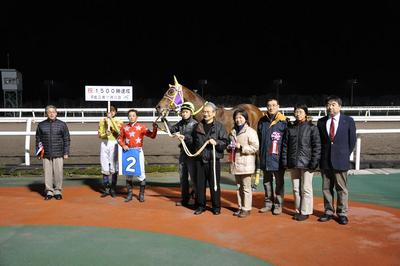口取り写真では、小林靖幸騎手がプラカードを持ってくれました。なお、1,500勝達成の表彰式は、明日の第10競走本馬場入場後(20:20頃)ウイナーズサークルで実施予定です。