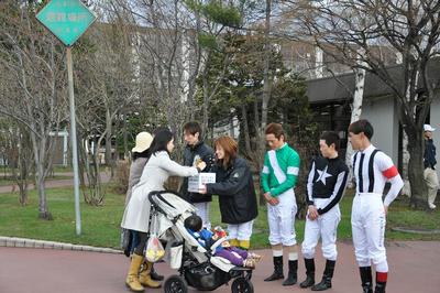 ホッカイドウ競馬の騎手(北海道調騎会騎手部会)が、4月24日(日)に札幌競馬場で東日本大震災の被災された皆様への支援として募金活動を実施しました。