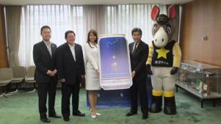 その発表に伴い、北海道庁3階の知事会議室で、サッポロビール株式会社北海道本社 代表 泉山俊彦様と2011サッポロビールイメージガール葉月ミカさんから高原陽二副知事へ贈呈式が行われました。