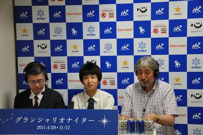 レース終了後のパドック解説に生徒を代表し、馬術部繁殖部門3年茂木啓吾さんが出演し、出産から現在に至るまでの思い出などについて話して頂きました。