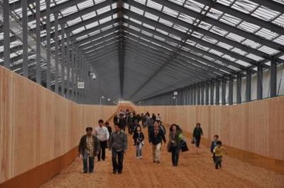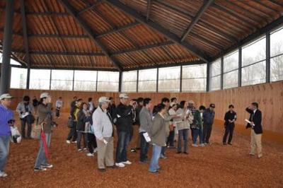 みんなで見学!新設坂路コース体験ウオーク 2012.05.03 門別競馬場に新設された屋内坂路コースを自ら歩く「体験ウオーク」が実施され45名が参加し、 「ウッドチップがふかふかで気持ちがいい」、「施設がきれい」と新設坂路コースのウッドチップを踏みしめ 全長900m最大斜度5,5%を体験しました。