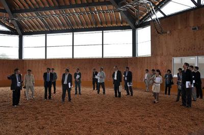 北海学園大学で開催されている第59回経済地理学会のご一行の皆様が「日高地方における世界屈指のサラブレッド産地の取組み」をテーマとした、エクスカーション(共同で行う野外調査)の一貫として、わが国のサラブレッドの重要な流通機構として、また利用施設として大きな役割を果たしている門別競馬場を視察しました。
