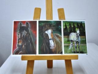 馬産地・日高の牧場でのんびり過ごす親子馬の様子「SAYAKA」。「白い馬」「タテガミ」や「コスモバルク号」などをモチーフとしたポストカードや、小さなキャンパスに描かれた油絵を販売いたします。