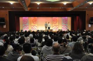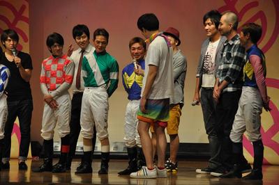 ホッカイドウ競馬応援お笑いライブin日高 開催 2012.06.30 本日、門別総合町民センターでよしもと芸人達によるお笑いライブが開催されました。 お笑いライブ終了後、関係者のご協力のもとホッカイドウ競馬の騎手5名(秋田大助騎手、阿部龍騎手、亀井洋司騎手、川島雅人騎手、服部茂史騎手)と来週から怪我から復帰予定の下村瑠衣騎手がステージに立ち、出演者と一緒にホッカイドウ競馬のPRを行いました。
