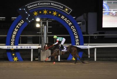今年ホッカイドウ競馬でデビューした2歳馬による最高峰のレースのひとつ、JRA認定netkeiba.com杯 第6回ブリーダーズゴールドジュニアカップ(H1)[ヴィクトワールピサ賞]が行われ、岩橋 勇二騎乗の3番人気カイカヨソウ号が、2着アウターバンクス号に2馬身差をつけて優勝しました(タイム2.00.2)。