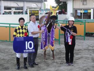 レースは、サクラサクラサクラ号が2番手につけて、ショウリダバンザイ号が中団からレースを進め、最後の直線では、サクラサクラサクラ号が直線に入って先頭に立つとショウリダバンザイ号に3馬身差つけて優勝しました(タイム 2.01.4)。