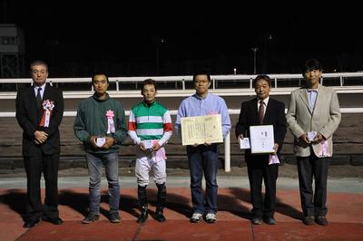 9月27日(木)、UHB杯第12回フローラルカップ(H3)〔ジャングルポケット賞〕が行われ、五十嵐 冬樹騎手騎乗のカイカヨソウ号が2着ハニーパイ号に3馬身差をつけて優勝しました(タイム:1.50.4 曇・重)。