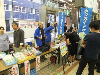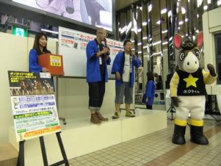 「ウインズ札幌秋の大感謝祭」でのホッカイドウ競馬PRイベント 2012.10.01 9月30日(日)、JRAウインズ札幌A館1階でホッカイドウ競馬のPRイベントを行いました。ホッカイドウ競馬クイズダービーの公開プレゼント抽選会では札幌よしもと所属「しろっぷ」が司会進行を務め、大いに盛り上がりました。