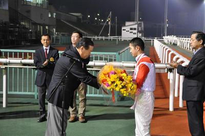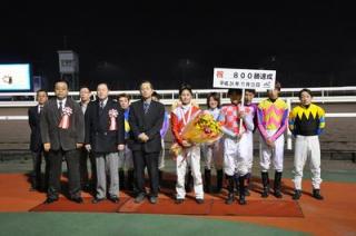 佐々木 国明騎手 800勝達成表彰式 2012.11.14 11月13日(火)、地方・中央通算800勝を達成した佐々木 国明騎手(若松 平厩舎)の表彰式が本日の第6競走終了後、ウイナーズサークルで行われました。