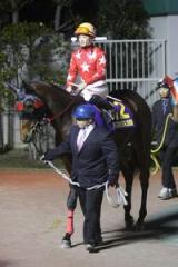 課題だった左回りについては、平和賞の時よりは上手にこなしてくれたと思います。空馬がいて苦労した場面もあったようですが、なにせ今回は相手が強過ぎましたから。最後はクラグオーには先着できたみたいだし、頑張ってくれたと思いますよ。今後ですが、笠松に持って行くにも適当なレースもないようなので、一度北海道に戻ってオーナーと相談することになりますね。