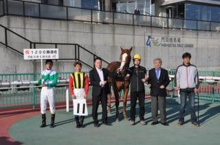 口取り写真では、石川倭騎手がプラカードを持ってくれました。