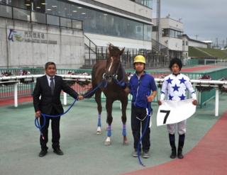 角川秀樹調教師700勝達成 2013.07.03 7月3日(水)、門別競馬第6Rでグランドファシナ号が1着となり、管理する角川秀樹調教師は、4、887出走で通算700勝(ホッカイドウ競馬では現役8人目)を達成しました。 角川秀樹調教師コメント 「これからは大台の1、000勝目指して頑張りたいです。」