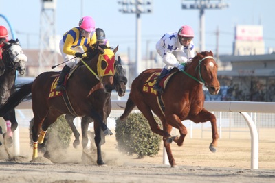 先週の大井がラストでしたが、12勝も挙げさせてもらうことができ、お世話になった大井の森下先生はじめ厩舎の皆さん、いい馬に乗せて下さった関係者の皆さんに感謝の気持ちでいっぱいです。昨年より良い成績を挙げられたのは、とにかく良い馬にたくさん乗せていただいた、それに尽きると思います。昨年ホッカイドウで初めてリーディングを獲らせていただいて、それで少し知名度も上がったりした面もあるのかもしれませんが、とにかくこれだけたくさん、良い馬に乗せてもらえて勉強になりましたし、良い経験になりました。この経験を春から始まるホッカイドウ競馬に活かし、もちろん2年続けてリーディングも獲りたいですし、去年は届かなかった「100勝」もめざしたいですね。後輩の(阿部)龍も頑張っているので、龍と2人でそろって成績を伸ばしたいですし、それができれば厩舎(所属する角川秀樹厩舎)全体の成績もあがることになるわけですから、そうなればベストかなと思っています。ファンの皆さん、新年度もホッカイドウ競馬へのご声援、よろしくお願いします!