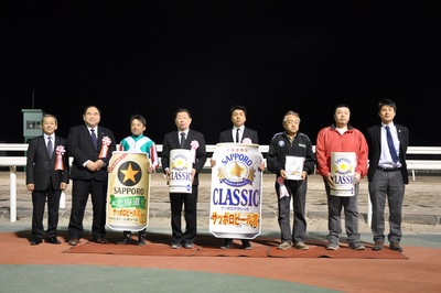 本日のメイン競走、サッポロビール杯 第4回 コスモバルク記念(H2)[コンデュイット賞](ダート1,800m 晴・良)が行われ、1番人気バルーン号が2着グッドグラッド号に3/4馬身差をつけ優勝しました(タイム:1.56.5)。